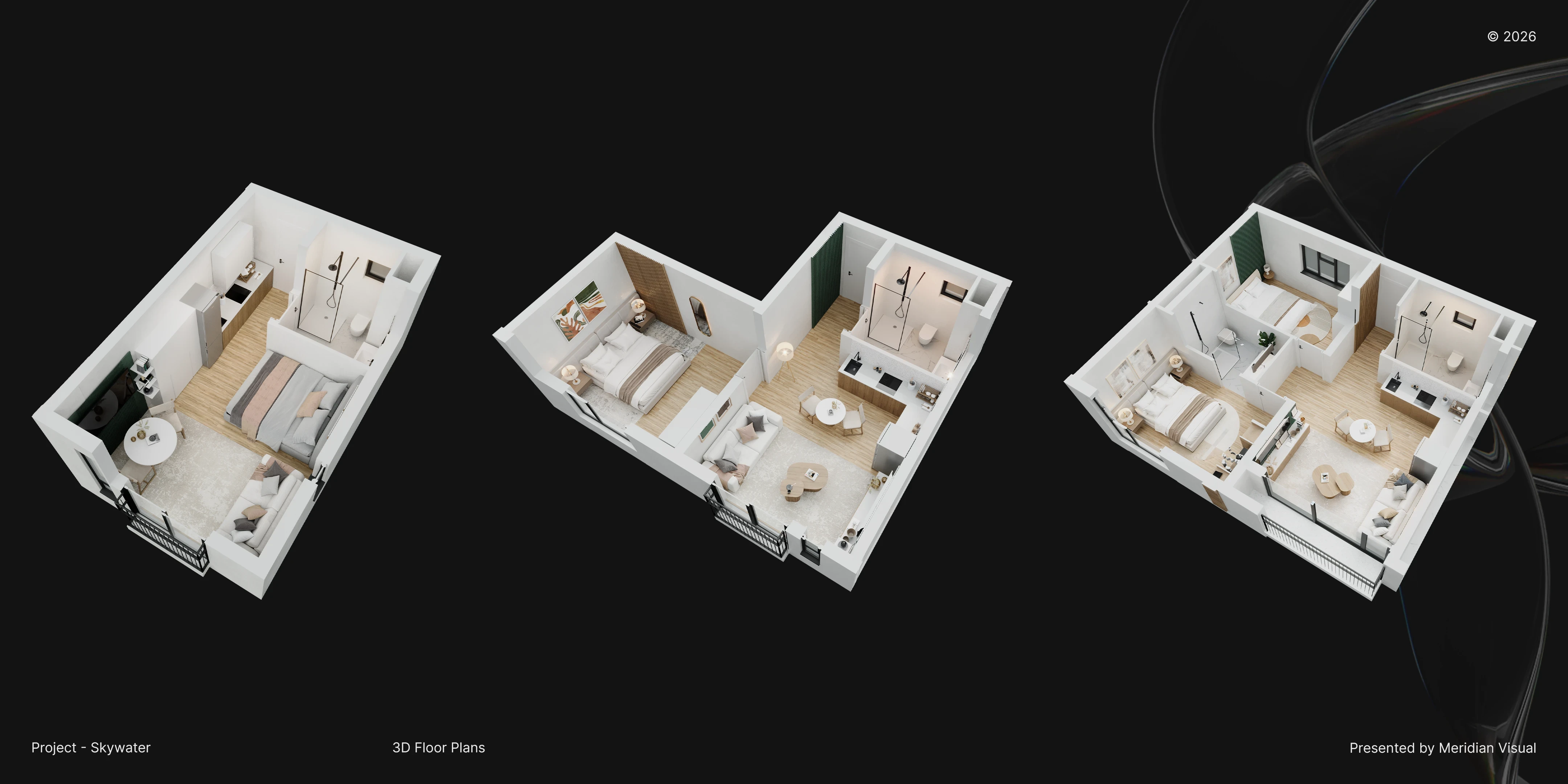 Skywater is a contemporary residential development in Century City, comprising 122 apartments across multiple buildings. The project required a visual approach that could clearly communicate architectural intent, setting, and lifestyle to support off plan sales in a competitive market. We worked closely with the project team to produce a coordinated suite of visuals, including exterior and interior imagery, aerial views, and supporting marketing assets. The focus was on clarity and consistency, helping buyers understand the development’s relationship to the surrounding lake, the quality of the living spaces, and the overall character of the project. The resulting visuals formed a central part of the sales and marketing material, contributing to a confident market presence and a fully sold development.